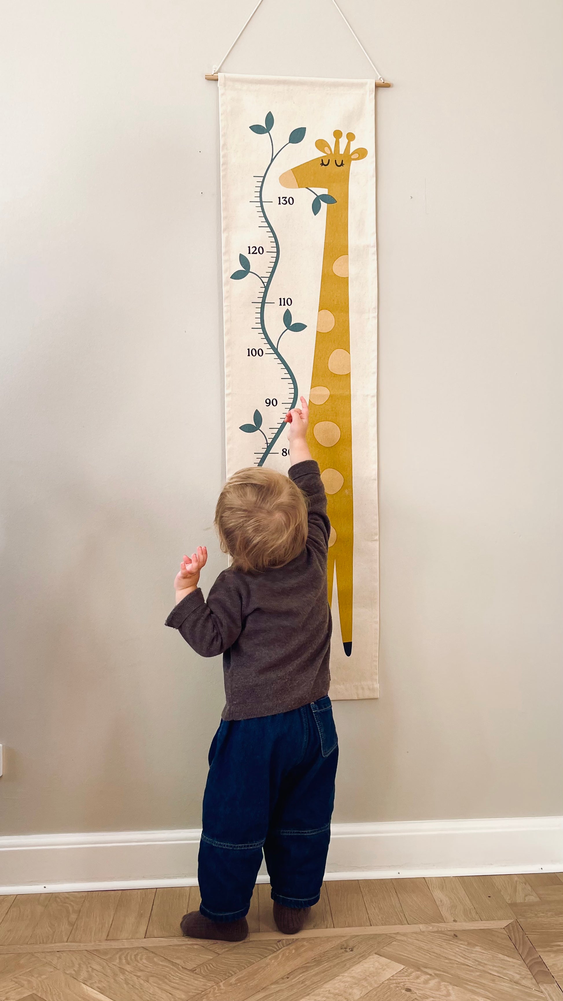 Fremstillet i økologisk bomuldskanvas og kommer med træophæng og snor, så den er nem at sætte op i ethvert børneværelse.Mål dit barns højde fra 65 cm til 135 cm, og følg udviklingen gennem årene. En hyggelig og personlig måde at skabe varige minder i hjemmet på.